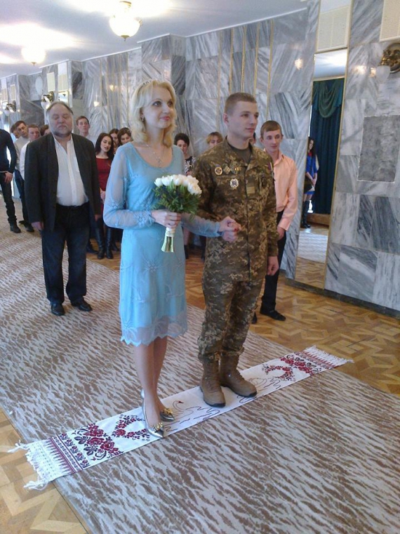 Боєць 80 окремої десантно-штурмової бригади 23-річний Анатолій Устимюк та студентка 20-річна Катерина Фіц одружилися 2 жовтня. Весілля святкували 3 дні. Для того орендували банкетну залу у місті Камінь-Каширський на Волині. Запросили понад 250 гостей: усіх родичів та друзів. Пара познайомилася ще 6 років тому. Через два роки почали зустрічатися. Та про весілля не думали, поки у 2014 році Анатолій не поїхав на схід. Там під Слов'янськом отримав важке поранення. Довго лікувався. Як одужав — зробив дівчині пропозицію Зараз пара облаштовує власне жило у Камінь-Каширському. Анатолій хоче закінчити реабілітацію і влаштуватися на роботу. Катерина — навчається на 2 курсі філологічного факультету Переяслав-Хмельницького педагогічного університету.