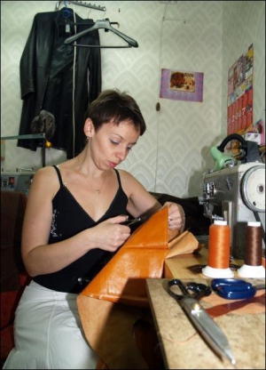 Вінничанка Наталя Швець, 33 роки, шиє нові шкіряні куртки й дублянки і перешиває старі. Використовує модні тепер мереживо, хутро і вишивку.