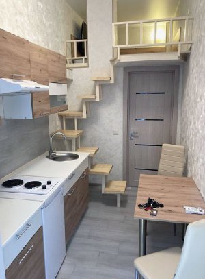 У Києві продають мініквартиру без вікон. Житло площею 20 "квадратів" розташоване на першому поверсі. Розділене на кухню, санвузол. Спальне місце розмістили під стелею, до нього ведуть східці. Власник просить за квартиру $33 тис. — це понад 881 тис. грн.