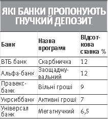 Гнучкі депозити пропонують у "Правекс-банку", "Укрсиббанку", "Сбербанке России", "Альфа-банку" та інших — 7-12% річних.