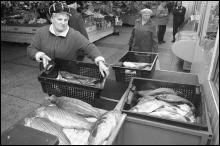 — До нас приходять люди, яким потрібна велика риба — вагою 5–7 кг. У магазині кіло коштує на п"ять гривень дорожче. Перед Новим роком почнеться справжня торгівля, — продавщиця хапає за голову здоровенного сазана й відправляє на ваги. — Мені вже дітей не треба народжувати, отже й без чоловіків справимося.