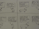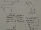 - Найбільшу увагу здобув, мабуть, комікс про підарасів. (Герої розмовляють про політичну орієнтацію - Сабака питає у Сави, права вона чи ліва. "Іменно щас, Сабака, Я ліва, относітельно тебе". Сабака перепитує про ставлення до представників нетрадиційної орієнтації. На що Сава злітає вгору і каже "Я буду више всего етого" .- Gazeta.ua). Ще коли Сергій Квіт закрив виставку, і про журнал "Есквайр". А найцікавіші відгуки - спершу половина людей думала шо Сава - це ворона, яку звуть Сава. Не сова, а Сава. І склоняли мене малювати Саву схожою на сову, а не на ворону. Я так зробив два раза, а потім мені сказали, шоб не схилявся перед публікою і малював так, як малюю.