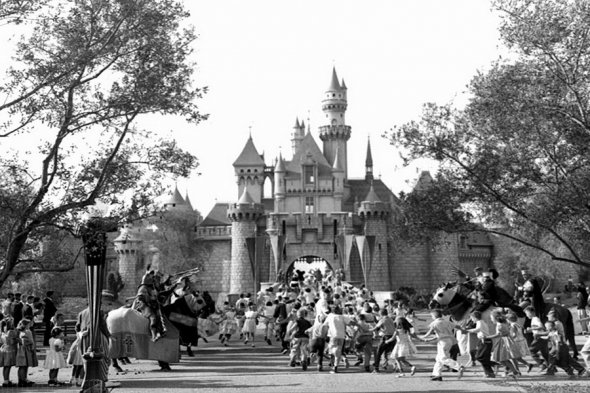 "Ми вірили в нашу ідею - сімейний парк, де батьки і діти можуть веселитися разом". У 50-х роках у Діснея з'явилися кошти, щоб здійснити мрію своєї дочки Дайани - побудувати казкове королівство, в якому діти могли б весело проводити час зі своїми батьками і героями мультфільмів. Волт умовив 17 сімей продати йому землі на півдні Лос-Анджелеса і 1955 року, витративши $17 млн, відкрив перший Діснейленд.