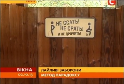 Таблички з брутальними заборонами розмістили у харківському парку Сажин Яр. У ньому облаштували купальню й нові роздягальні. В них повісили таблички з написами російською: "Не ссать! Не срать! И не дрочить". Відвідувачі парку обурені - не вважають подібну лексику припустимою в громадському місці. Один із них стверджує, що особисто намагався переконати адміністрацію парку не вивішувати грубощів. Представник фірми-виконавця підтвердив, що проект реконструкції парку, й зокрема - вигляд роздягальні, належить міській владі. Це чітко вказано й на стенді при вході до парку.