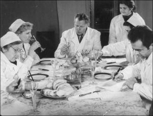 За сталінських часів шампанське залишалося здебільшого напоєм номенклатури. Серед широких верств населення воно не було поширеним. Навіть через рік після смерті "батька народів", 1954-го, рекламний плакат агітував купувати "Советское Шампанское". Людям роз'яснювали, що це "отличное виноградное вино", в якому "хорошо сохраняется все ценное, что есть в лучших сортах винограда".