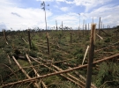 Люди поспіхом зміцнюють дахи своїх будинків, видаляють повалені дерева і ремонтують лінії електропередач.