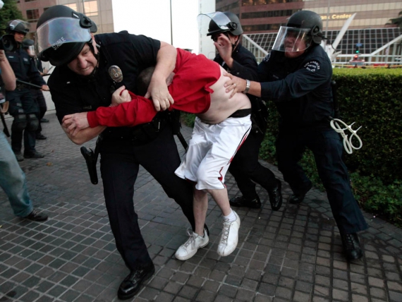 Поліція Лос-Анджелеса (штат Каліфорнія) заарештувала в четвер 23 прихильників руху "Окупуй Уолл-стріт" за блокування проїзду транспорту на перехресті в частині міста, де сконцентровані адміністративні та фінансові установи. Активісти, які перегородили проїжджу частину, взявшись за руки, не чинили опору.