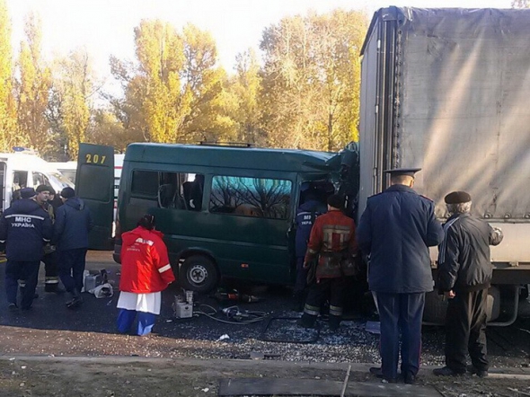 У Дніпрі на вул. Маршала Малиновського маршрутка врізалась у вантажівку. Удар був такої сили, що зім'яв передню частину мікроавтобуса. Пасажирів вирізали з понівеченої автівки.