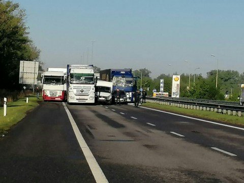 Учасниками ДТП стали 10 вантажівок та 5 легкових автомобілів. Утворився 5-кілометровий затор, повідомляє спільнота "Київ Оперативний".