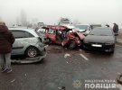 І трохи далі від мосту зіштовхнулися одразу 11 автомобілів. Перелами нижніх кінцівок та струс головного мозку отримали водій та пасажирка "ВАЗу".