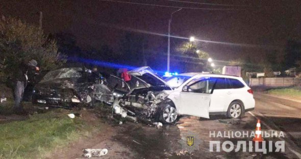 "Попередньо встановлено, що 55-річний водій автомобіля Subaru Legasy під час обгону виїхав на зустрічну смугу, де врізався в Mazda Xedos 6", - сказано в повідомленні.