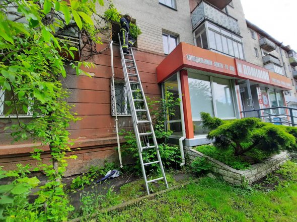 "Рятувальники на місці побачили, що старенька з вікна вже починає спускатися. Вони негайно піднялися на другий поверх по пожежній драбині та не допустили, щоб жінка спустилася", - сказано в повідомленні.