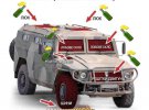 По бронеавтомобілях "Тайфун" - лобове скло, верхню частину з люками.