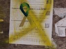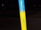 Учасники руху опору вчергове прикрасили місто українськими національними кольорами й розклеїли в різних районах листівки, повідомляють місцеві Telegram-канали.