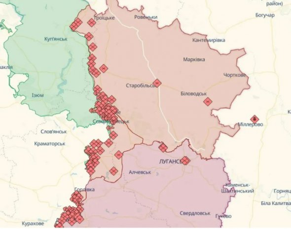 Ситуація у Харківській та Луганській областях залишається напруженою, свідчать свіжі карти американського Інституту вивчення війни (ISW).