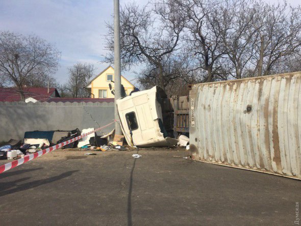 Близько 14:30 на Шкодовій горі зіткнулися дві вантажівки. Одна з них, автомобіль DAF із причепом, перекинулася на бік. Водій другої зазнав тілесних ушкоджень, повідомили в прес-службі патрульної поліції в Одеській області.