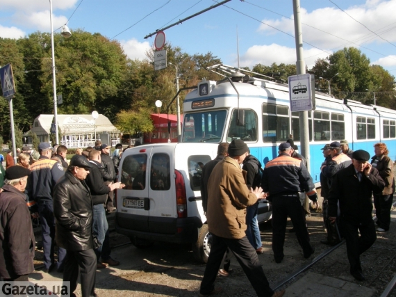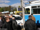 Автомобіль зачепився за трамвай. Їх роз'єднували працівники трамвайно-тролейбусного депо, співробітники ДАІ та прості перехожі. Автомобіль все ж таки вдалось відтягти на узбіччя.