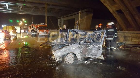 Автомобіль Daewoo Nexia влетів у стовп, запалав і повністю згорів.