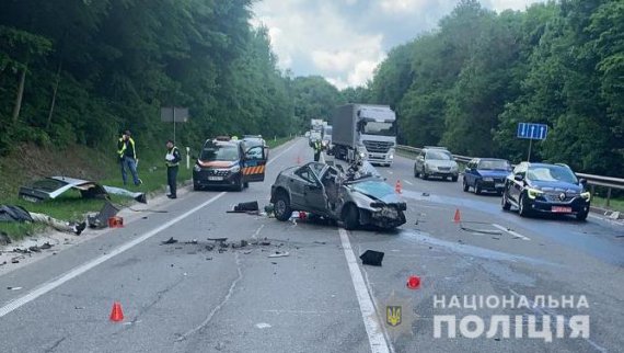 "За кермом легковика перебував 54-річний мешканець міста Дніпро, він виїхав на смугу зустрічного руху і врізався у вантажівку. Останньою керував 35-річний житель Броварів. Внаслідок зіткнення водій легковика та його син-пасажир від отриманих травм померли на місці події", - сказано в повідомленні.