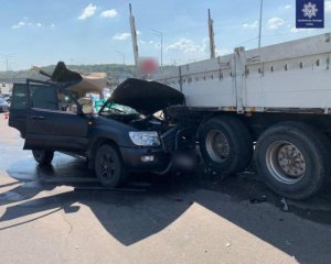 "Автопригода відбулася між автомобілем Toyota Land Cruiser та вантажівкою Daf з напівпричепом Ackermann. Обидва рухалися в напрямку Дарницького мосту", - сказано в повідомленні.