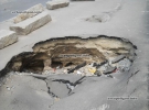 Яма поблизу метро "Васильківська" виникла вже більше півроку тому, але ремонтників тут так і не було. За зиму провалля стало значно глибшим, узбіччя дороги перетворилося на руїну.