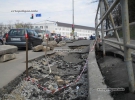 Хоча будівельники, які латають дірку на проїжджій частині, за кілька метрів від хаосу на тротуарі, не впевнені, що дві прогалини пов'язані. Принаймні латати узбіччя, кажуть, їм не замовляли. Поки ж, його офіційно перекрили для пішоходів.