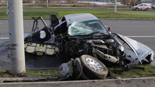 1 листопада у Дніпрі автомобіль BMW потрапив у серйозну ДТП на Набережній Перемоги під Південним мостом. Легковик врізався у бетонний стовп.