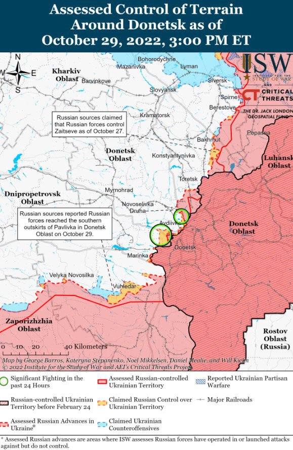 "Жодне із цих тверджень не містило підтвердження відеофіксації бойових дій. Генштаб України не повідомляв про завдання російськими військами наземних ударів на заході Донеччини 29 жовтня", – апелювали в ISW.