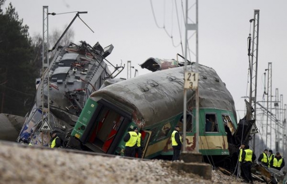 Нагадаємо, вчора, 3 березня, за 200 кілометрів на південь від Варшави зіткнулися два пасажирські поїзди сполученням Варшава-Краків і Перемишль-Варшава. Глава МВС країни Яцек Чіхоцкій повідомив, що загинули 15 людей, близько 60 поранені. Всього в обох поїздах перебувало близькл 350 людей.
