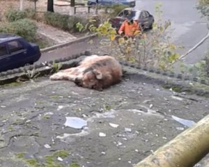 Поліція виїхала на місце події та виявили на козирку під'їзду №5 собаку середнього розміру, рудого кольору. Правоохоронці опитали жителів цього будинку та встановили, що це був дворовий собака. Одна із опитаних розповіла, що бачила, як собака вилетіла через розбите вікно, і відразу ж там бачила чоловіка невисокого росту. .