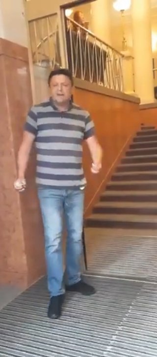 Герой відео стверджує, що він сапер у минулому й "живим не піде, сяде на 10 років". Також просить чоловіків заходити в будівлю, а жінок - ні.