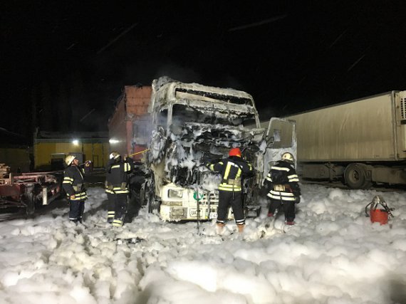 "У кабіні автівки вогнеборці виявили тіло загиблого чоловіка, за попередніми даними, водія. Вогнем пошкоджено автомобіль DAF, розташований поруч", - розповіли рятувальники.
