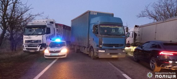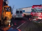 "Зіткнулися Renault Premium під керуванням 38-річного водія, Volvo FN, за кермом якої був 45-річний чоловік і DAF під керуванням 49-річного водія. Останнє авто після зіткнення вилетіло на смугу зустрічного руху, де зіткнулося із вантажівкою MAN LE, за кермом якої був 42-річний чоловік", - сказано в повідомленні.