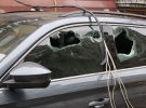 У Mitsubishi і Skoda від удару вибило бічні і заднє скло, а в Acura відірвало номера. Крім того, частини даху обірвали дроти. На місце вже вирушили комунальники, щоб знеструмити їх.