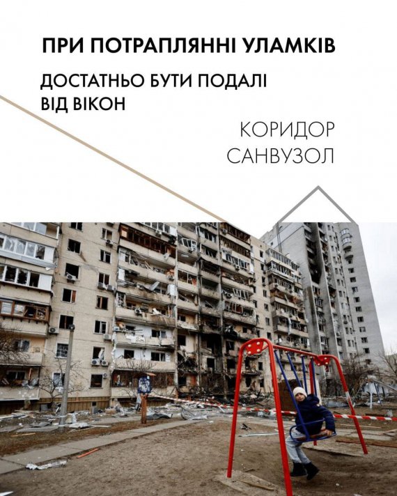 При потраплянні уламків достатньо бути далеко від вікон: у коридорі чи санвузлі.