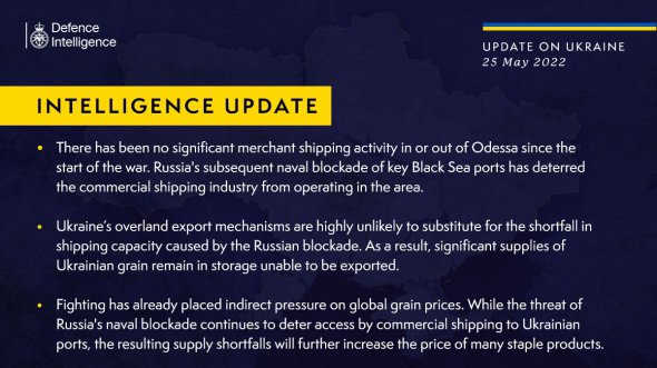 "Механізми сухопутного експорту України навряд чи замінять дефіцит судноплавства, викликаний російською блокадою. У результаті значні обсяги українського зерна залишаються у сховищах і не можуть бути експортовані", – повідомляють розвідники.