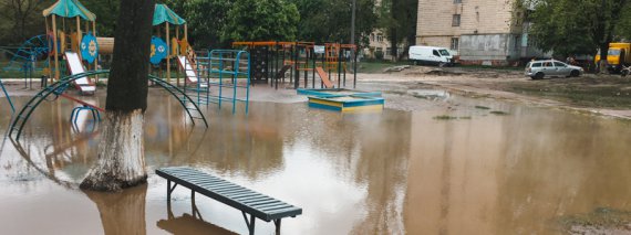 У Святошинському районі Києва через прорив теплотраси дитячий майданчик залило окропом. 2 автомобілі сповзли до ями.