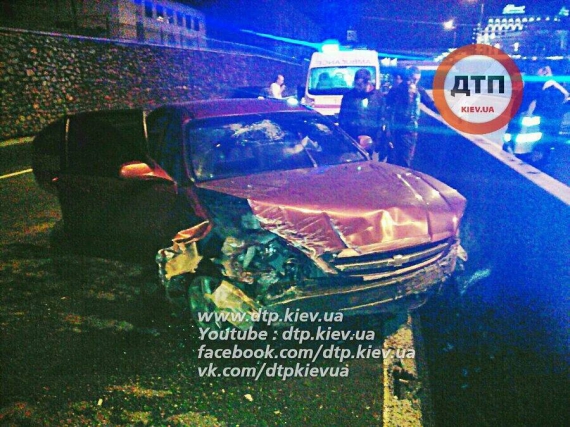 5 хлопців та дівчина розбилися об відбійник на Набережній у столиці. Пасажирка, родом із Житомира, вилетіла вперед та розбила головою лобове скло машини.