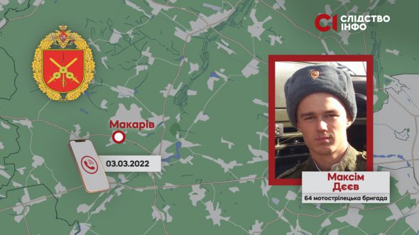 Наприклад, російський телефонний номер сержанта 28-річного Мітапа Бадмаєва 6 березня фіксувався у селі Личанка Бучанського району. У цьому ж селі на початку березня користувався своїм мобільним ще один окупант з 5-ї бригади - молодший сержант 29-річний Арсалан Хобраков.