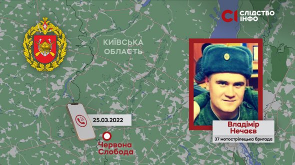 Сержант 30-річний Володимир Нечаєв станом на 25 березня, імовірно, перебував у селі Червона Слобода. Саме там базова станція зафіксувала його російський номер телефону, з якого здійснювалися дзвінки, напевне, "на родіну".