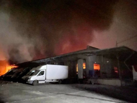 Зазначається, що ворожий удар спричинив сильну пожежу. Горіло на понад 3 тис. кв. м.