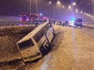 "23-річний водій автобуса раптово повернув з дороги, вдарився об енергопоглинаючий бар'єр, пробив його, перекинувся і впав у канаву. Водій був тверезий", - розповіли в поліції.