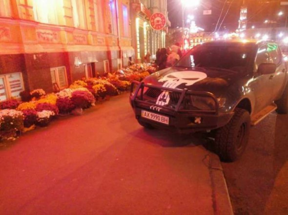 На фото видно, що водій позашляховика заїхав прямо на тротуар, де 18 жовтня автомобіль Lexus в'їхав у натовп людей. Тоді на місці ДТП загинули п'ятеро людей, шоста жертва цього ДТП померла за кілька днів у лікарні.