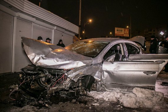 Автомобіль отримав серйозні пошкодження кузова, двигун машини вилетів, а ліве колесо відірвало.