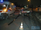 У четвер увечері в Києві на вулиці Бориспільській у лобову жорстко зіткнулися ВАЗ-21099 і Fiat Doblo.