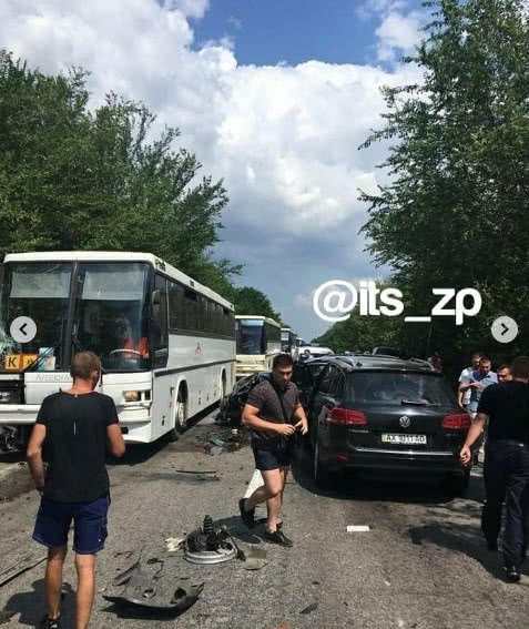 Окрім мікроавтобуса, в ДТП потрапили також два 2 автобуси, які перевозили дітей. І ще 2 автомобілі, які рухались в попутному напрямку, сказано в повідомленні Управління державної охорони України.