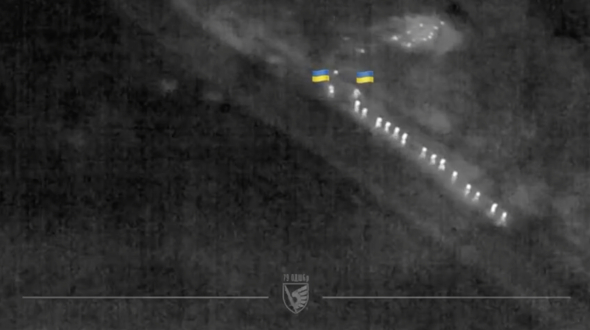 Пресслужба також опублікувала кадри цієї операції, які зняли нічні дрони. На них видно, що захисники строєм виводили росіян з їхнього укриття у полон.