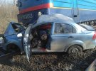 10 квітня на залізничному перегоні Плетений Ташлик – Новоукраїнка на Кіровоградщині електропоїзд розчавив легковик Chevrolet Aveo.