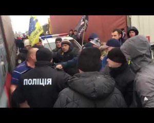 Як зазначається, водій вантажівки MAN не звертав уваги на активістів і поїхав в їхній бік, а ті у відповідь почали бити по кабіні машини, і коли шофер вийшов назовні, отримав кілька ударів.
