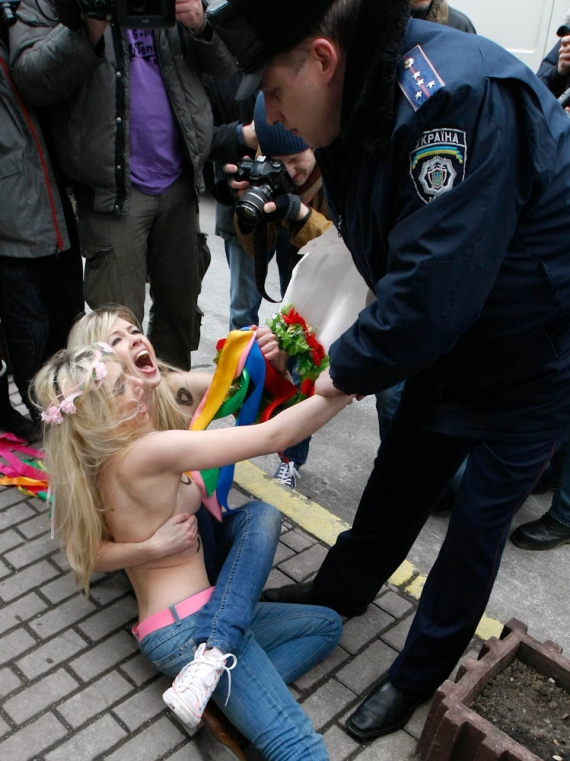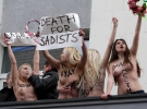 Напівроздягнені дівчата окупували вхід до Генеральної прокуратури України і залізли на карниз будівлі. Активістки скандували: "Оксана, живи!", "Смерть садистам!" і "Стратити виродків!".